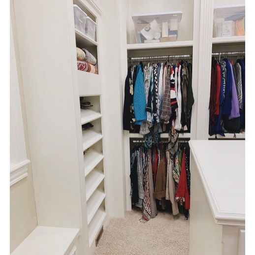 My client already had an impressive system for organizing and picking items to wear from her hanging clothes, so we didn't need to do much here. Rather, we focused on organizing and containing her memorabilia, purging unwanted or items no longer needed and organizing her drawer storage. Setting up a system for maintenance has helped keep this closet in check and functional.